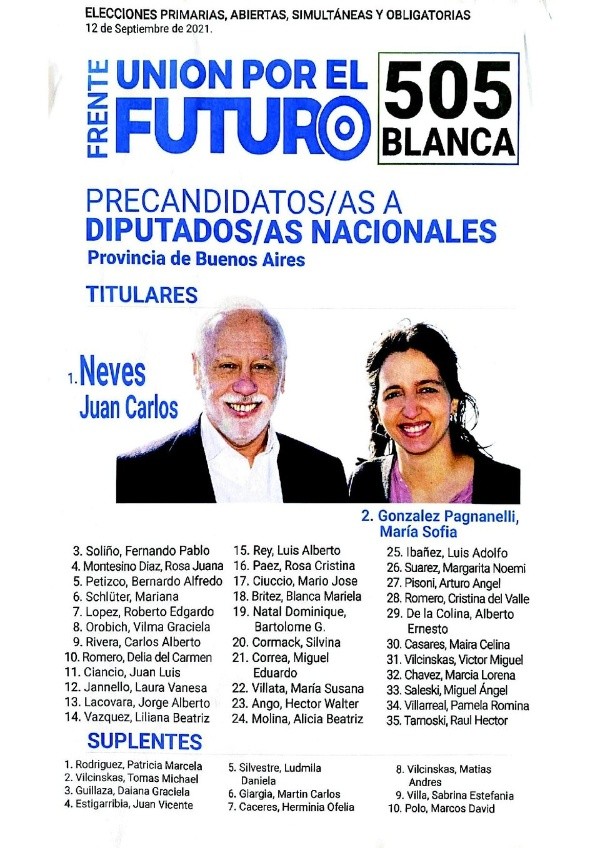 - Unión por el Futuro – Lista Blanca: Juan Carlos Neves – María Sofía González