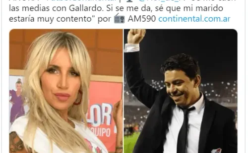 Teniendo en cuenta que tanto ella como su pareja son hinchas de River, ella abrió la puerta a una posible relación poliamorosa con el Muñeco:“Sería Gallardo, sin dudas, y sé quemi marido estaría muy contento. Si nos deja hacerle algunas preguntas en el medio, vamos a estar todos chochos”.