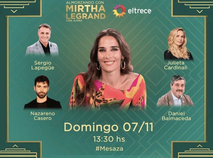 Un día más tarde, la nieta de Mirtha Legrand tendrá el honor de compartir la mesaza en Almorzando con Mirtha Legrand con Sergio Lapegüe(periodiosta y conductor de radio), Juliena Cardinali (actriz), Nazareno Casero(actor) y Daniel Balmaceda(periodista).