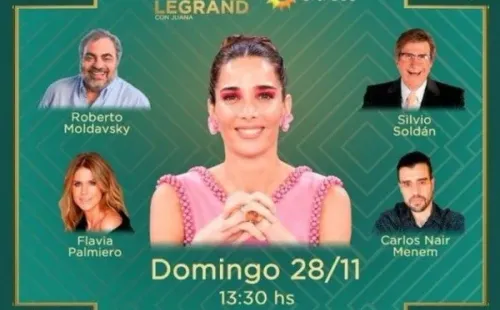 Un día más tarde, la nieta de Mirtha Legrand tendrá el honor de compartir la mesaza de Almorzando con Mirtha Legrand conRoberto Moldavsky, Silvio Soldán, Flavia Palmiero y Carlos Nair Menem.