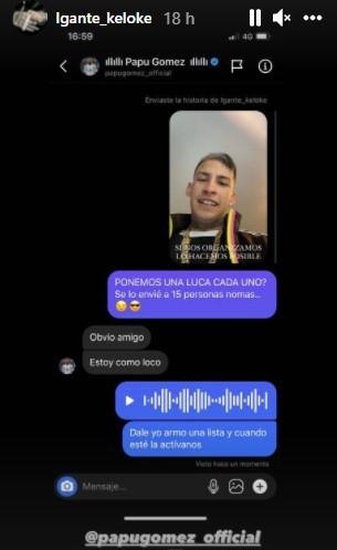 “¿Qué onda la gente? Escuchen,esto es para ayudar“, comenzó a explicar L-Gante mediante un video. “Les voy a pasar las imágenes que explican el problema que tiene un nene.Mi idea es que nos juntemos entre quince y la hagamos. Si nos organizamos, lo hacemos posible”, completó.