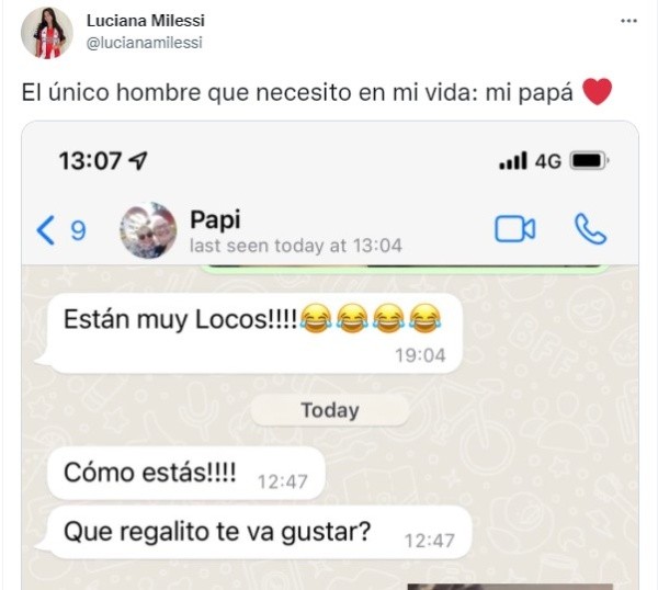 Hoy, Luciana compartió una conversación con su padre en Whatsapp, pero todos comenzaron a hablar ¡de sus stickers! ¿Por qué? Bueno…uno de ellos mostraba una imagen porno y los comentarios no tardaron en aparecer.