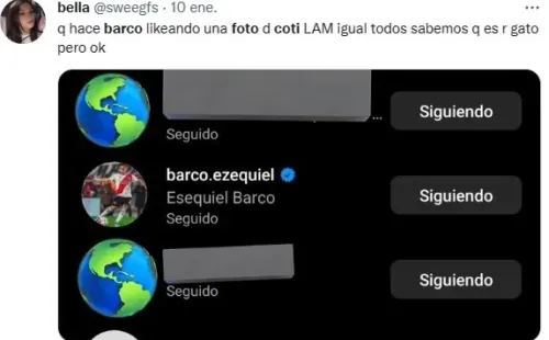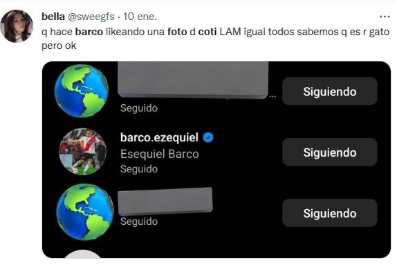 Ese es ni más ni menos que Esequiel Barco, que también había quedado “enganchado” en los rumores con Wanda Nara durante el pasado. En esta oportunidad, Coti no tuvo pelos en la lengua al dar nombre y apellido del futbolista de La Banda. Luego, distintos usuarios intentaron comprobar el run-run y aparecieron algunos likes del ex Independiente en la cuenta de Instagram de Costanza. ¡Tremendo!