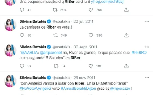 Las cargadas al Millo sobre su descenso en 2011 ya son moneda corriente entre los hinchas del club de La Ribera y Silvina Batakis se sumó a la ola con varios tuits en donde menciona a River, pero usando la B en referencia a la segunda categoría del fútbol argentino. También hubo algún que otro palito a Daniel Angelici por lo sucedido con Román y su contrato como jugador.