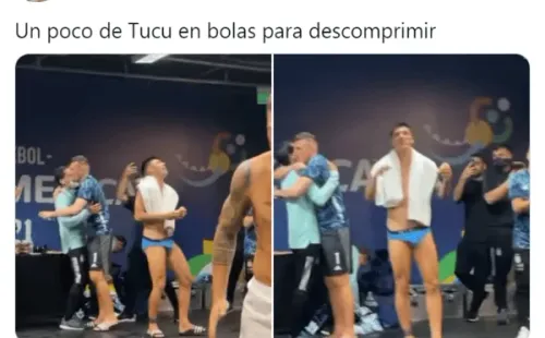 Se revolucionó todo en Twitter. La cosa comenzó cuando Nati Jota subió a la red social del pajarito algunas capturas de historias de Instagram que subieron los jugadores de la Selección Argentina, donde se puede ver a Joaquín Correa bastante liviano de ropa, festejando.