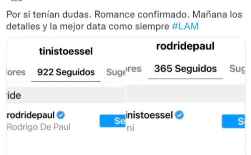 El secreto a voces continuó develándose en la jornada de domingo, cuando el propio De Paul comentó con un corazónel más reciente posteo de Tini en Instagram. Sin embargo, el volante del Atlético Madrid borró lo que había escrito y muchos pensaron que se trató de un error, pero la confirmación llegaría minutos después.