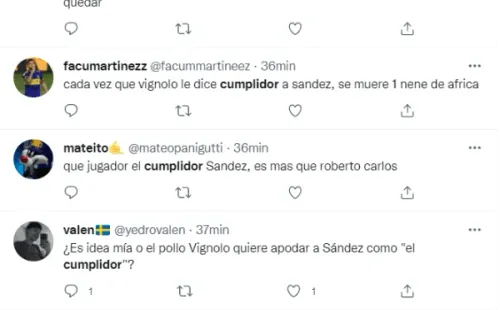 Uno de los mejores jugadores de la jornada fue Agustín Sández, o como el Pollo Vignolo lo bautizó, “El Cumplidor”. El apodo no tardó en hacerse viral en redes sociales y, por lo visto, la gente no estuvo tan a favor del nuevo mote.