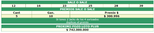 Este miércoles 20 de octubre, habrá un nuevo sorteo del Loto Plus. El mismo se llevará a cabo a partir de las 22.00 horario local. Los resultados y todos los números ganadores estarán anunciados al final de la nota.