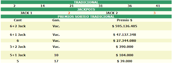 El pozo estimado para este sorteo del sábado 13de noviembre es de$764.000.000.