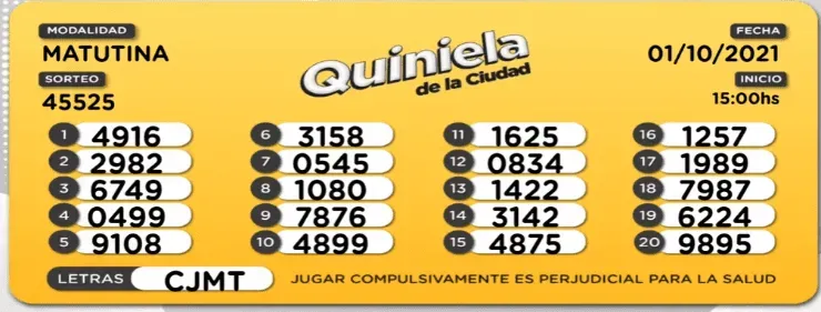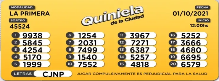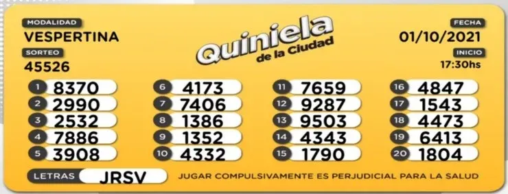 + CLICK ACÁ para VER ONLINE el sorteo de la Quiniela de la Ciudad