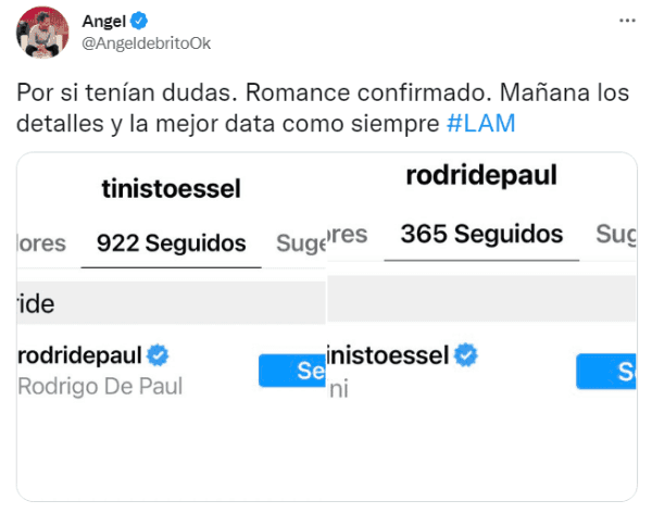 Todo comenzó con la noticia de que el futbolista de la Selección Argentina y el Atlético Madrid empezó a seguir al hermano y la mejor amiga de la cantante. Y hasta hubo un comentario del mediocampista nacional con un corazón en una de las publicaciones de Tini.