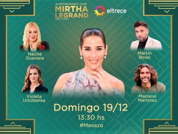 Un día más tarde, la nieta de Mirtha Legrand tendrá el honor de compartir la mesaza de Almorzando con Mirtha Legrand con Nacha Guevara, Martín Bossi, Violeta Urtizbereay Mariano Martínez.