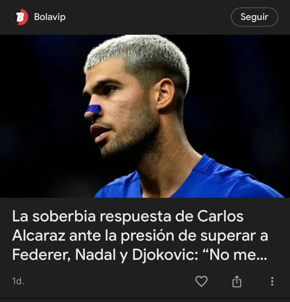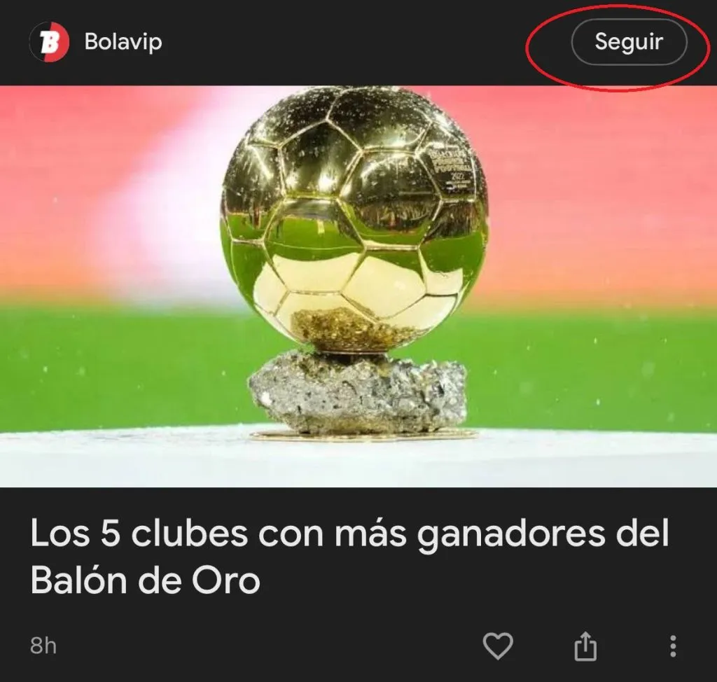 Mientras deslizás por tu feed, cuando veas un artículo, análisis o publicación de Bolavip, fijate si aparece el botón “Seguir” en la tarjeta de ese contenido. También podés buscar directamente “Bolavip” en Discover si no lo viste aún. - Pulsá “Seguir”