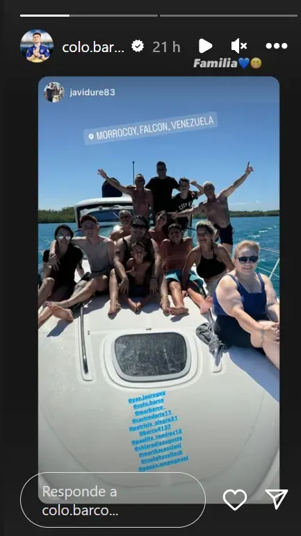 En un lujoso yate, el ex futbolista de Boca Juniors aprovechó el tiempo para conocer las playas venezolanas, donde junto a Yazmín Jaureguy (su pareja) aprovecharon la jornada de sol, arena y muy buen clima para relajar después de los primeros dos partidos que afrontaron los dirigidos por Javier Mascherano.