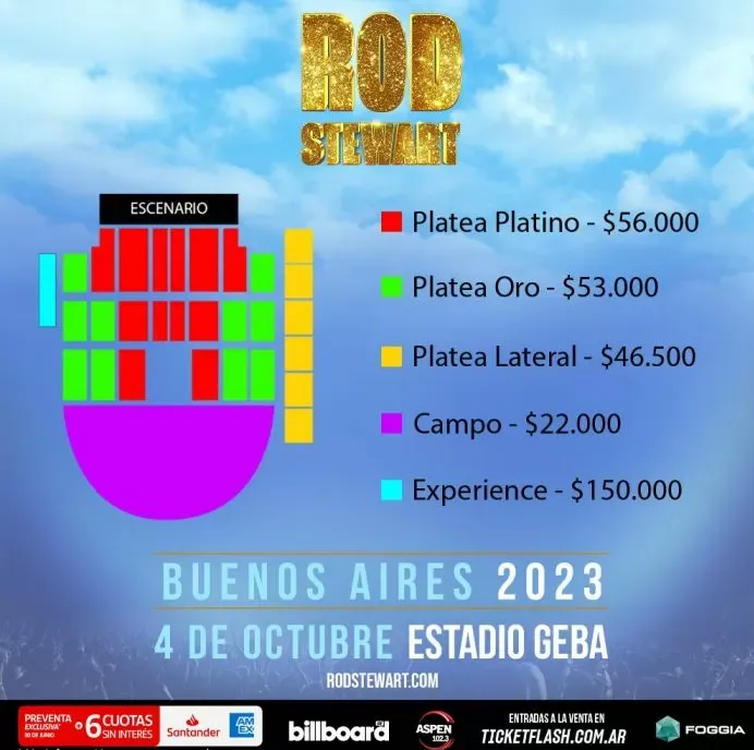 Está confirmado que los precios para ver a Rod Stewart en Argentina 2023 son los siguientes: