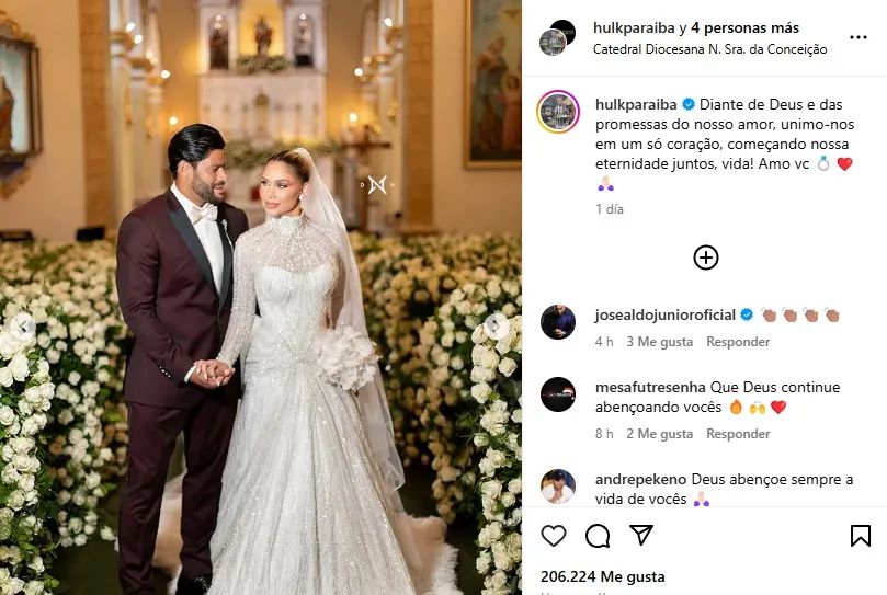 Lo cierto es que ya estaban casados por lo civil y este fin de semana presentaron su amor ante Dios a poco más de 5 años de su unión legal. En Brasil aún levantan polémica porque ella es la sobrina de la exesposa y madre de los primeros hijos de Hulk.