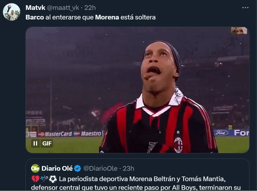 Por medio de X, la red social anteriormente conocida como Twitter, fanáticos de diversos clubes aprovecharon la ruptura de Beltrán y Mantia para manifestar que la blonda periodista estaría recibiendo muchísimos mensajes privados a través de Instagram por parte del ex Independiente. Pero hasta el momento, ninguno de los dos se hizo eco del rumor. ¿Volverá a confiar en el amor y apostará por el futbolista de River o solamente será una falsa historia de la nuevas generaciones tecnológicas?
