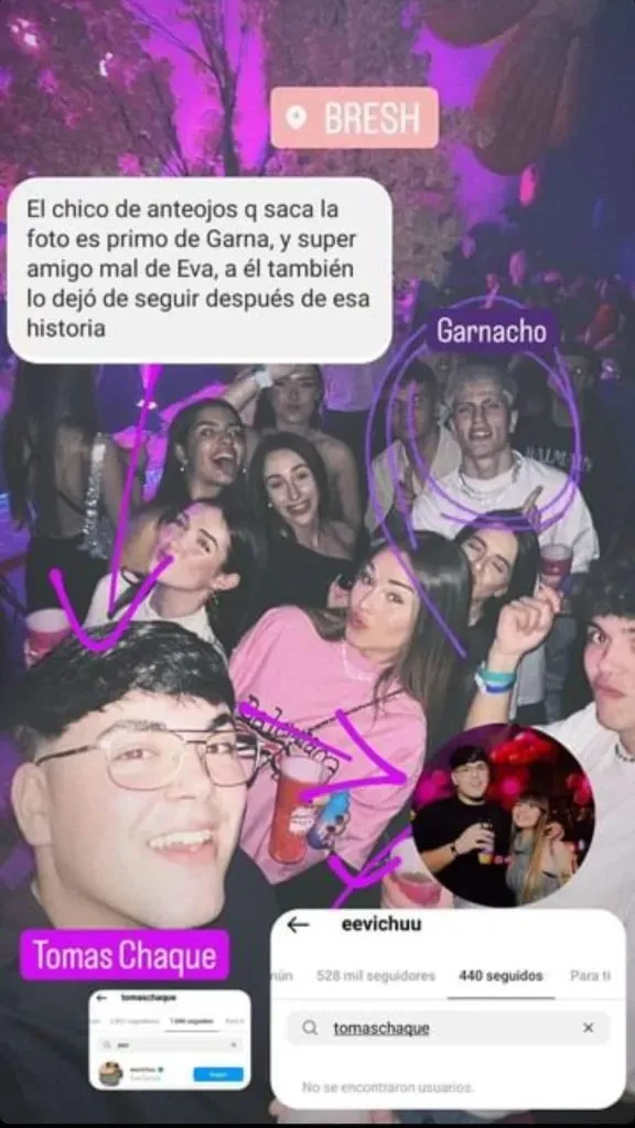 El usuario de Instagram Lo Más Popu, fue quien destapó esta noticia, informando que Eva García dejó de seguir al delantero del Manchester United en sus redes sociales, mientras que el argentino continúa siguiéndola. Además, agrega que el motivo de esto, habría sido que Garnacho salió de fiesta con sus amigos en los últimos días.
