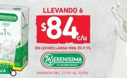 ¿Pensando en un postre? Entonces, esta opción es hasta el 2 de junio, hay un 50% en la segunda unidad de dulce de leche La Serenisima y la distinta variedad de quesos Finlandia. ¿La mejor combinación? La mejor combinación.