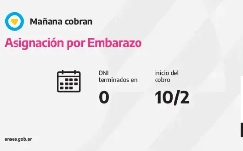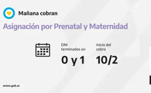 Las titulares de la Asignación porPrenataly Asignación por Maternidad con documentos terminados en0y1perciben hoy su prestación.