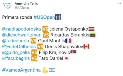 Llegó la hora de que se desarrolle la última cita grande en lo que tiene que ver con el mundo deltenis. Más precisamente lo que será el desarrollo delUS Open 2021. Lo cierto es que hay siete tenistas que representarán a Argentina, sumando a Nadia Podoroska como única mujer, en un campeonato que comienza su camino a partir del lunes 30 de agostoen el USTA Billie Jean King National Tennis Center.