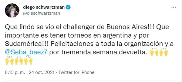 Sigue el desarrollo de una nueva instancia dentro del certamen de Austria como lo es el ATP 500 de Viena. En esta oportunidad,Diego Schwartzman(16) estará chocando contra el italianoFabio Fognini(36) por la primera ronda. El juego tendrá lugar estemiércoles 27de octubre,desde la Glaubandich Court de Wiener Stadthalle de Austria, con transmisiónEN VIVOy EN DIRECTOde Star+.