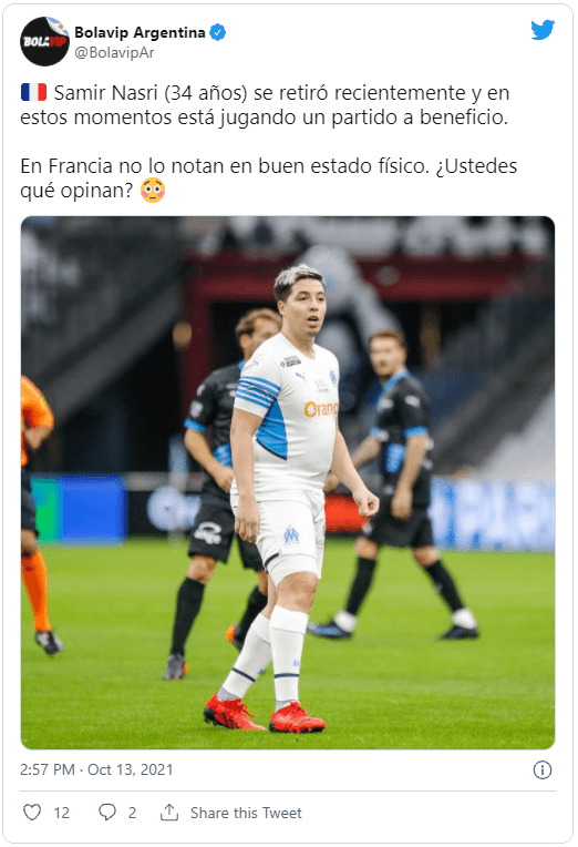 Uno de los que está transitando esa etapa es Samir Nasri, que no juega desde hace poco más de un año pero anunció su retiro en septiembre de este año. Al ex-Manchester City se lo vio en un partido de leyendas del Olympique de Marsella y su físico llamó la atención.