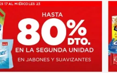 Pero no solo eso. Sino que, además de estas increiblesofertas, podés encontrar otros descuentos cómohasta 80 % en la segunda unidad de jabones y suavizantes, 70% de descuento en la segunda unidad de pañales descartables Pampers yhasta 2×1 en objetos seleccionados de almacén para COMBINAR COMO QUIERAS.