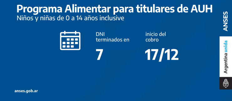 En el marco del Plan Argentina contra el Hambre del Ministerio de Desarrollo Social, ANSES acompaña con el pago del programa Alimentar.