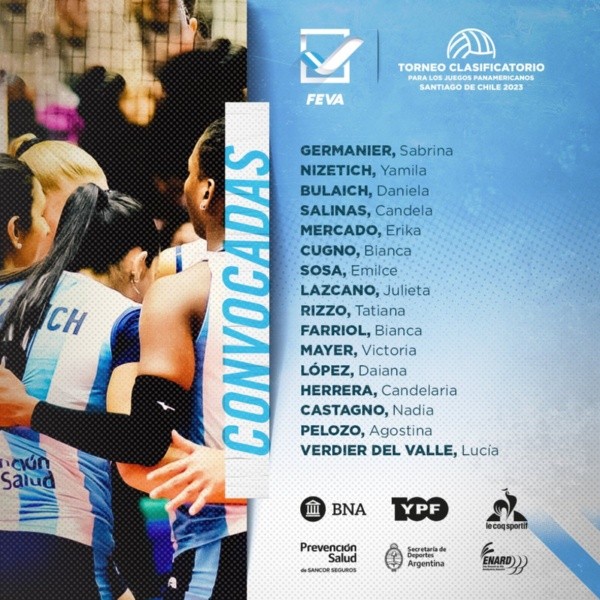El seleccionado femenino de vóley dirigido por Hernán Ferraro ya tiene la lista definitiva que jugarán en San Juan el Torneo Pre Panamericano, entre el 9 y el 11 de agosto. Este viernes 5 ya estarán camino a la provincia cuyana.Serán 16 jugadoras con la base del equipo que fue parte de la gira amistosa por Santa Fe y Buenos Aires.