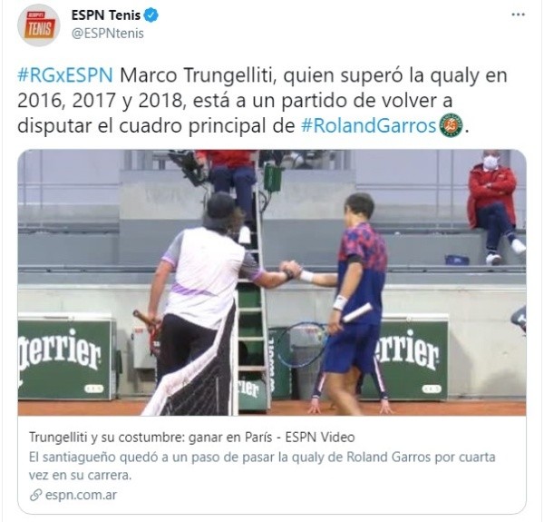 Hay ocho nombres que ya tienen asegurado su lugar y rival en el cuadro principal deRoland Garros, solo que ahora se buscan a los ocho restantes. Por la tercera ronda de laQualy, el argentinoMarco Trungellitiva a disputar su último cotejo ante el estadounidenseMackenzie McDonald. El juego se llevará a cabo esteviernes 28 de mayoen la cancha 7delStade Roland Garros de París. Primer choque oficial entre ambos.