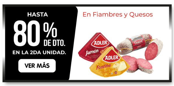 No solo esto, sino que también hay hasta 80 por ciento de descuento en la segunda unidad en fiambres y quesos, hasta 50 por ciento de descuento en chorizos y morcillas, hasta 35 por ciento de descuento en postres helados y 25 por ciento de descuento en alimento para mascotas.