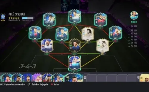 Con Neuer al arco, tres defensores como Sergio Ramos, Thiago Silva y el histórico brasileño Carlos Alberto; Neymar, Mbappé, Maradona y Messi en el mediocampo, Son, Cristiano Ronaldo y Salah de delanteros, todos ellos en cartas especiales del juego, Pelé asignó a estos once como los mejores para él con Guardiola como entrenador.