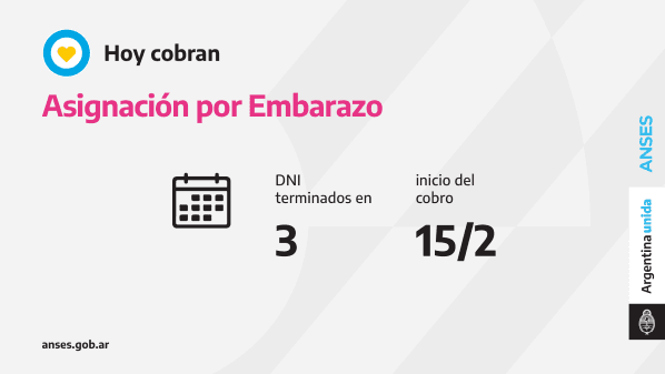 Con la utilización de la tarjeta de débito, hoy cobran la Asignación por Embarazo las titulares con documentos finalizados en3.