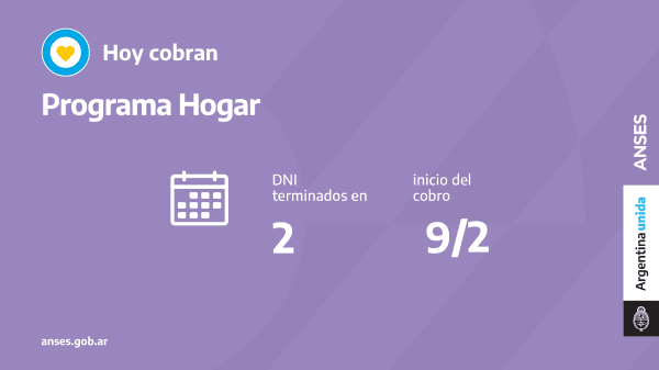 ANSES y la Secretaría de Energía impulsan en conjunto el Programa Hogar, mediante el cual se otorga un subsidio para la comprade garrafas en viviendas que no están conectadas a la red de gas natural.Hoycobran este beneficio las personas con documentos terminados en2.