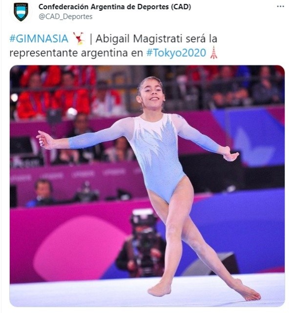 La única adolescente menor de 18 años de los 182 miembrosque conforman ladelegación Argentinase presenta dentro deTokio 2020. En esta oportunidad,Abigail Magistratiserá la deportista que ejercerá la prueba deGimnasia Artística femenina por losJuegos Olímpicos. La nacida en La Plata se presentará estesábado 24 de julio, sabiendo que tres de sus etapas las completará en la madrugada y mañana deldomingo 25 de julio. Este evento se podrá verEN VIVOyEN DIRECTOpor las pantallas deTV PúblicayTyC Sports.