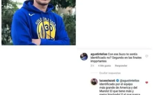 “¿Con ese buzo te sentís identificado no? Segundo en las finales importantes”, le escribió @agustintelias en Instagram por una foto en la que el defensor posó con ropa de los Golden State Warrios, equipo de la NBA que comparte colores con el Xeneize.