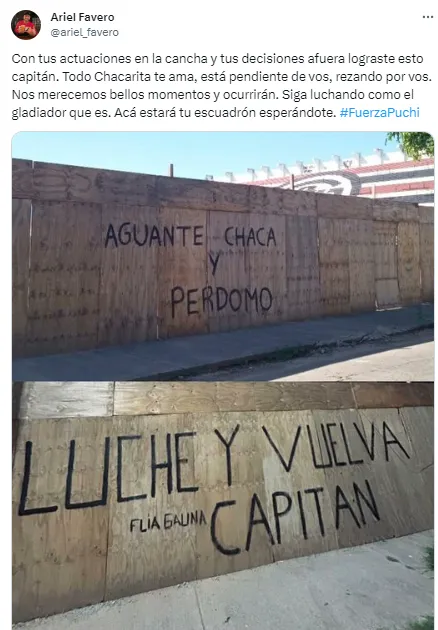 Desde que se conoció la noticia, los hinchas de Chacarita iniciaron una campaña en redes sociales bajo el hashtag #FuerzaPuchi. Poco después, los fanáticos llevaron las muestras de amor hacia el estadio del equipo.
