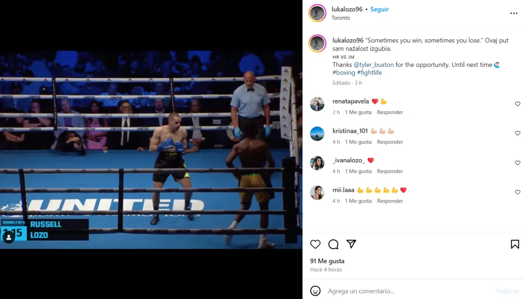 Lozo, por su parte, sumó su segunda derrota a su récord que se compone además de ocho victorias y un empate. Una vez terminado el combate, el croata de 28 años compartió una foto de la pelea en su cuenta de Instagram y escribió: “A veces ganás, a veces perdés”. Además, agradeció por la oportunidad y afirmó que habrá una próxima vez.