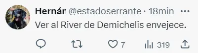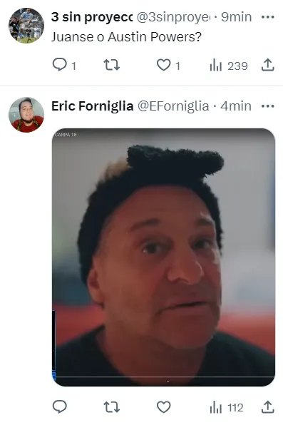 Es habitual que en Twitter los usuarios opinen y critiquen sobre cualquier asunto. El anonimato ayuda a que esto sea así. En esta oportunidad hubo comentarios de todo tipo, pero los más destacados fueron: “Se abuelizó”, también hubo uno que preguntó si era Juanse -cantante de los Ratones Paranoicos- o Austin Powers. Otro aprovechó para pegarle un palito a Demichelis -su sucesor en el Millonario- y escribió: “Ver al River de Demichelis envejece”.