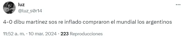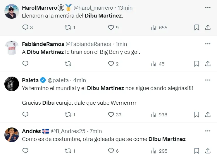 A los argentinos eso le encanta y por eso se enaltece la figura del Dibu Martínez y más por los resultados que obtuvo: campeón de la Copa América 2021 y del Mundial de Qatar 2022. Pero también hay que entender que eso cayó mal en gran parte del público en general que no vive el fútbol como los argentinos. Por eso, cada vez que al Dibu Martínez le marcan muchos goles o comete un error, en las redes sociales aparecen duras críticas hacia él.