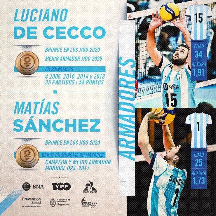 De Cecco, por su parte, viene de ser tricampeón en Italia, que es considerada la NBA del vóley, con su equipo, elCucine Lube Civitanova. Con ese título, se sumó otro récord particular: se transformó en el tercer argentino con más títulos en la Super Liga italiana, ya que sumó tres.