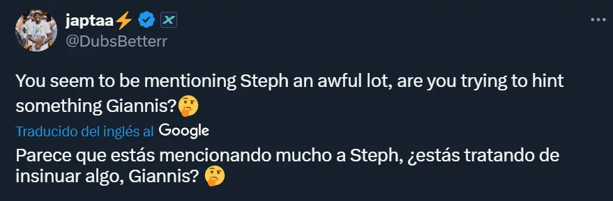 Automáticamente, generó muchísimas interacciones donde los diferentes usuarios le hicieron saber que estaba mencionando muchísimo al base de Golden State Warriors, y le consultaron si insinuaba jugar con él, ya sea en el elenco de San Francisco o que el basquetbolista de 37 años emigre hacia los Bucks. Pese a ello, no respondió a dichos comentarios.