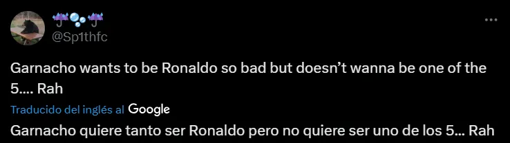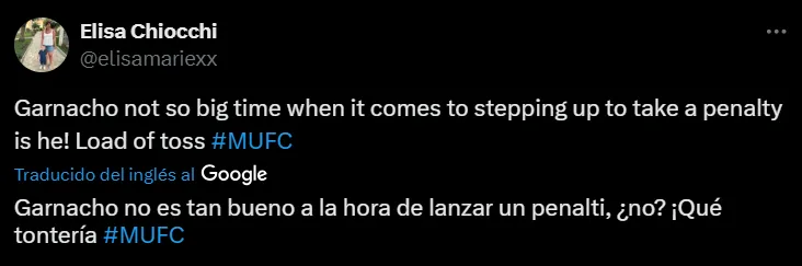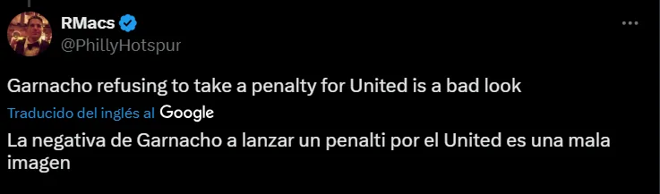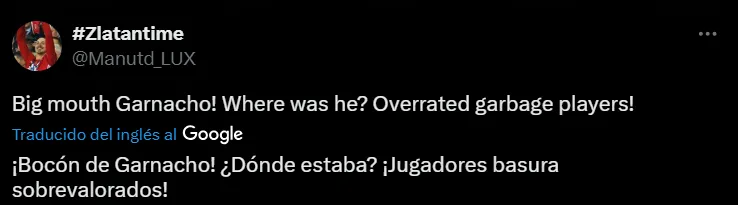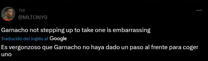 “Garnacho no tiene valor para lanzar un penalti pero Lindelof sí. Véndelo lo antes posible”, “Garnacho quiere tanto ser Ronaldo pero no quiere ser uno de los 5”, “La negativa de Garnacho a lanzar un penalti por el United es una mala imagen”, “¿Tanta bravuconería y Garnacho no puede con un penal?”, fueron algunas de las críticas para con el delantero argentino.