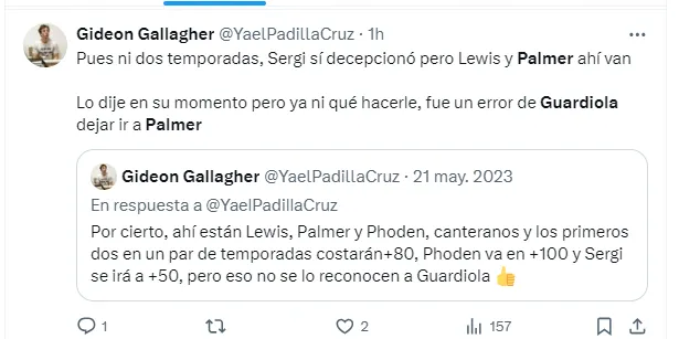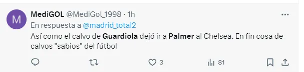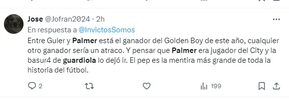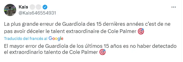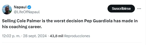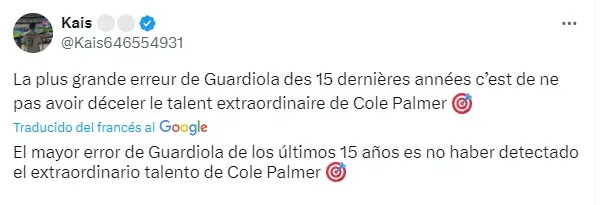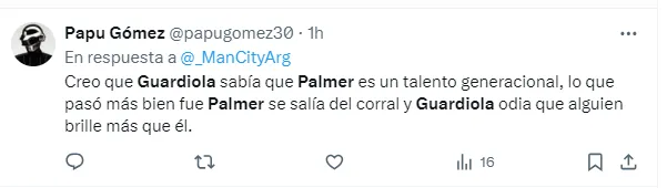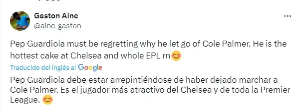 “Vender a Cole Palmer es la peor decisión que ha tomado Pep Guardiola en su carrera como entrenador”, “Guardiola odia que alguien brille más que él”, “Fue un error de Guardiola dejar ir a Palmer”, “¿Por qué el inventor del fútbol lo dejó ir?”, fueron algunos de los comentarios criticando al entrenador español.