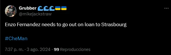 “Es el peor fichaje que hemos hecho en los últimos tiempos“, fue uno de los comentarios más duros que se vio en X (Twitter). “Sigue de vacaciones“, dijo otro, un poco menos grave. Y otro directamente pidió que lo cedan a préstamo al Racing de Estrasburgo, equipo del que también es dueño Todd Boehly, mandamás del Chelsea.