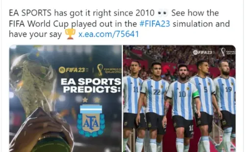 A través del FIFA 23, la empresa estadounidense de videojuegos simuló los 64 partidos del certamen. Antes de Sudáfrica dijo que el campeón iba a ser España, para el 2014 hizo lo propio con Alemania y en 2018 acertó con Francia. ¿Quién ganará Qatar 2022 para ellos? ¡ARGENTINA!