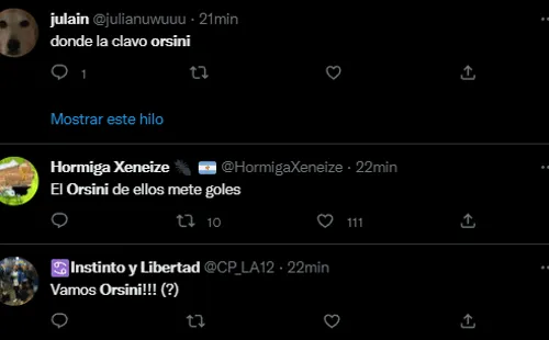 Por eso, además de los memes, las reacciones y las bromas de Argentina hacia Brasil por la eliminación del Scratch en la Copa del Mundo, el nombre de Nicolás Orsini estuvo rondando mucho por la red social del pajarito, lo suficiente como para que se convierta en tendencia en Argentina.