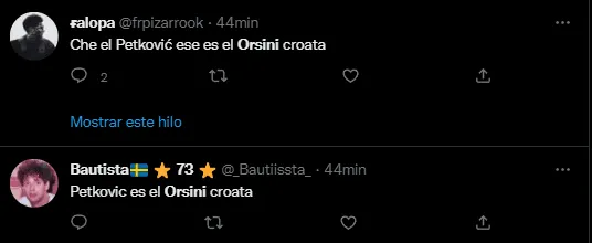 Con 1.93 y su posición dentro del campo, automáticamente desde que ingresó hasta que se terminó el encuentro, Petkovic fue comparado en las redes sociales con un futbolista resistido por los hinchas de Boca, siendo este Nicolás Orsini. El atacante del Xeneize estuvo en boca de todos en Twitter debido a que su par de Croacia tiene un físico similar y un estilo de juego asemejado.