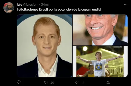 En concreto, en Twitter se hizo tendencia el tópico “Felicitaciones Brasil“, asumiendo que el Scratch sería el campeón del mundo en esta edición disputada en Qatar. Con varias fotos, videos y posteos, la red social del pajarito explotó por parte de los hinchas argentinos para intentar traerle mala suerte a su clásico sudamericano.